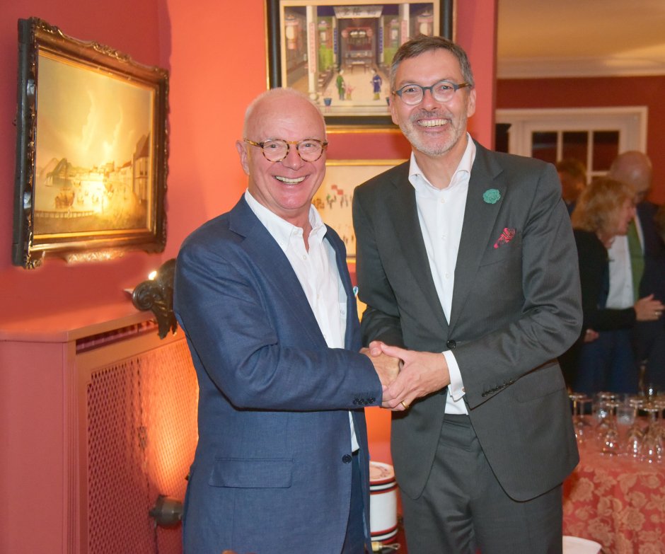 Herr Dr. Christian Kuhnt, Intendant des SHMF Schleswig-Holstein Musik Festivals, bedankt sich nach dem Konzert der japanischen Geigerin Midori im Kieler Schloss beim Künstler- und Sponsorenempfang am 14.07.2018 bei unserem Geschäftsführer, Herrn Kurt G. Schmalz, für die Unterstützung des Festivals.
